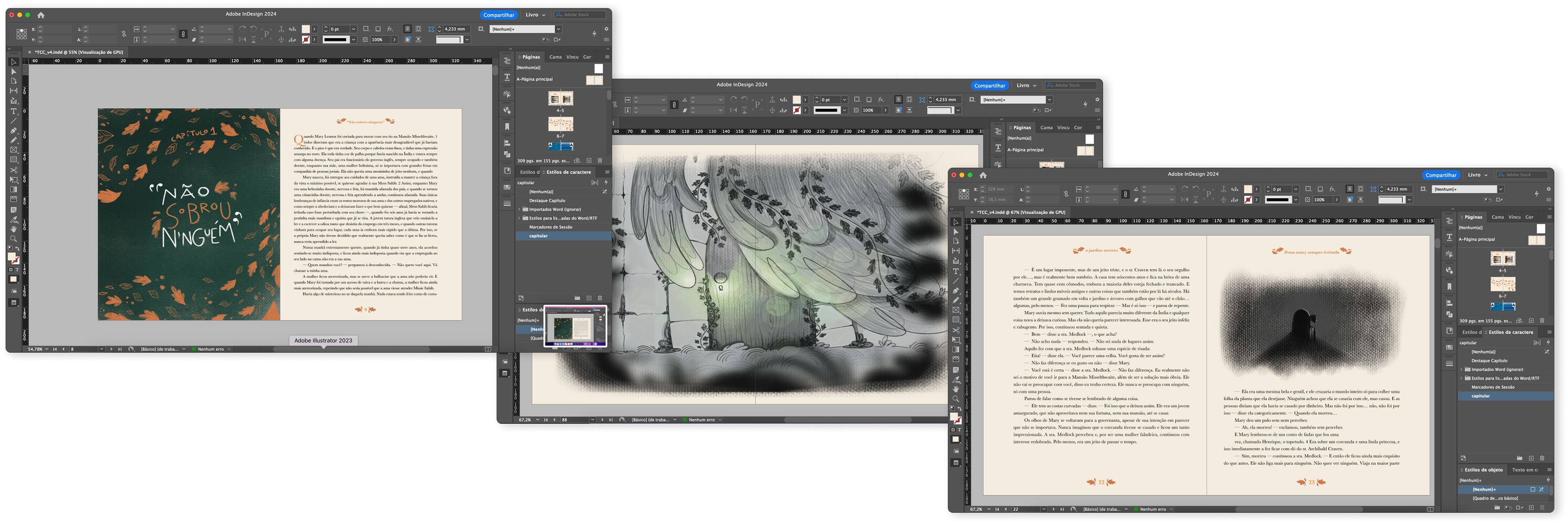 Roteiro de cor das ilustrações, acompanhando a narrativa de desenvolvimento e percepção da protagonista do livro "O Jardim Secreto".