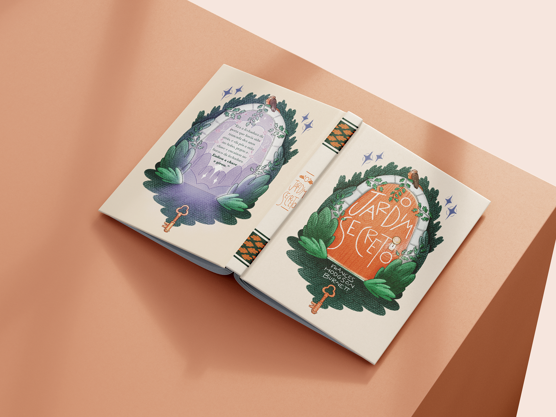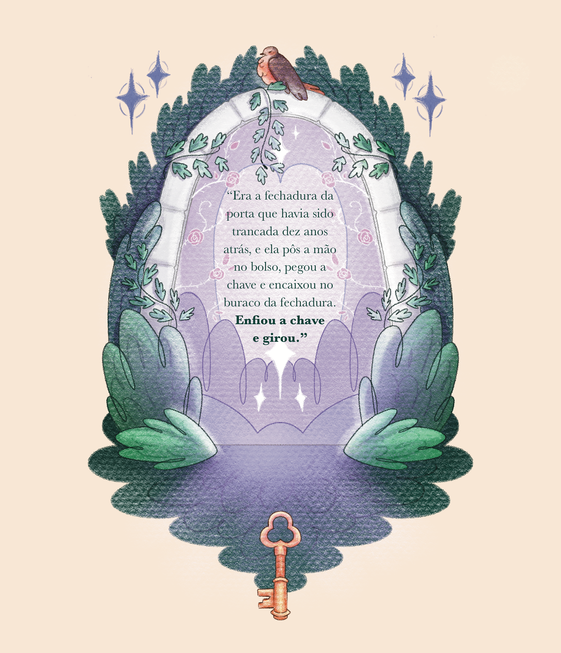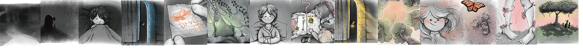 Roteiro de cor das ilustrações, acompanhando a narrativa de desenvolvimento e percepção da protagonista do livro "O Jardim Secreto".