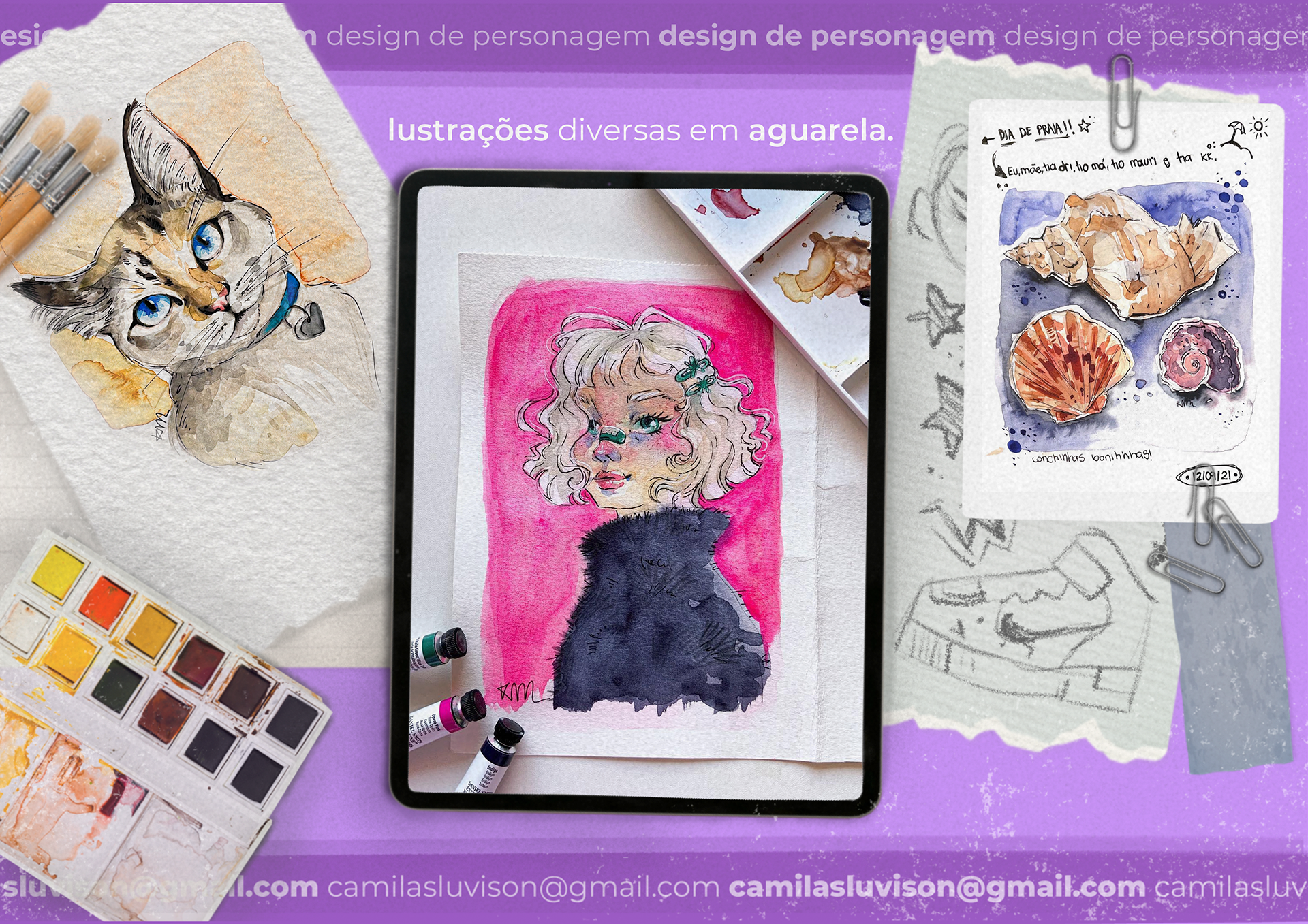 Compilado de trabalhos de ilustração digital e tradicional voltadas para empresas.