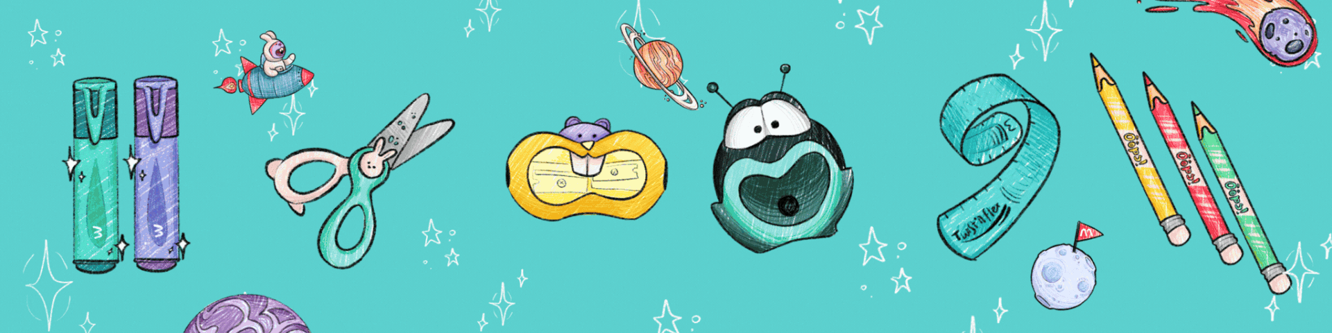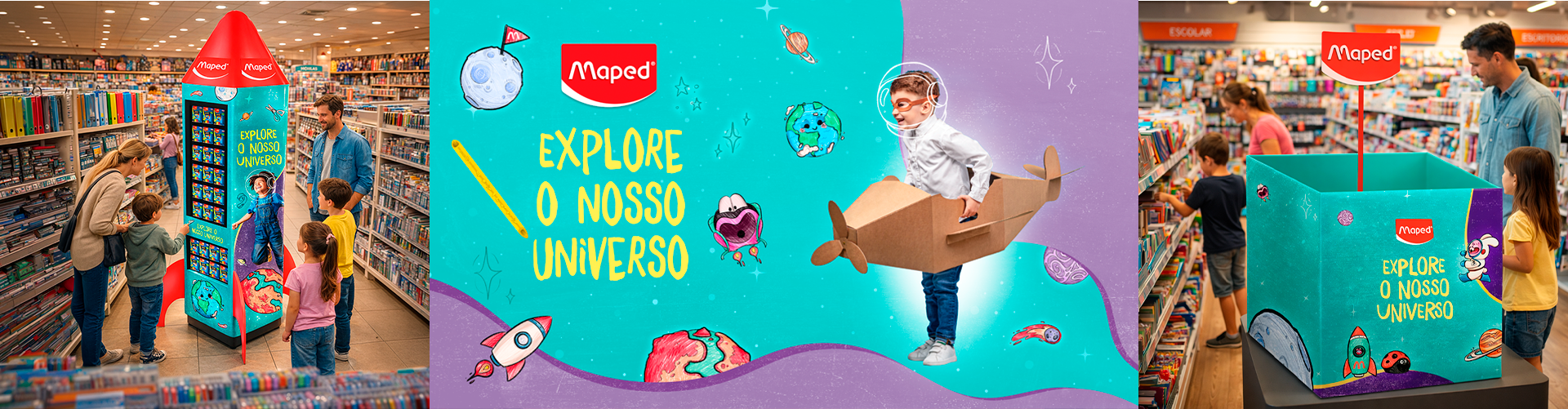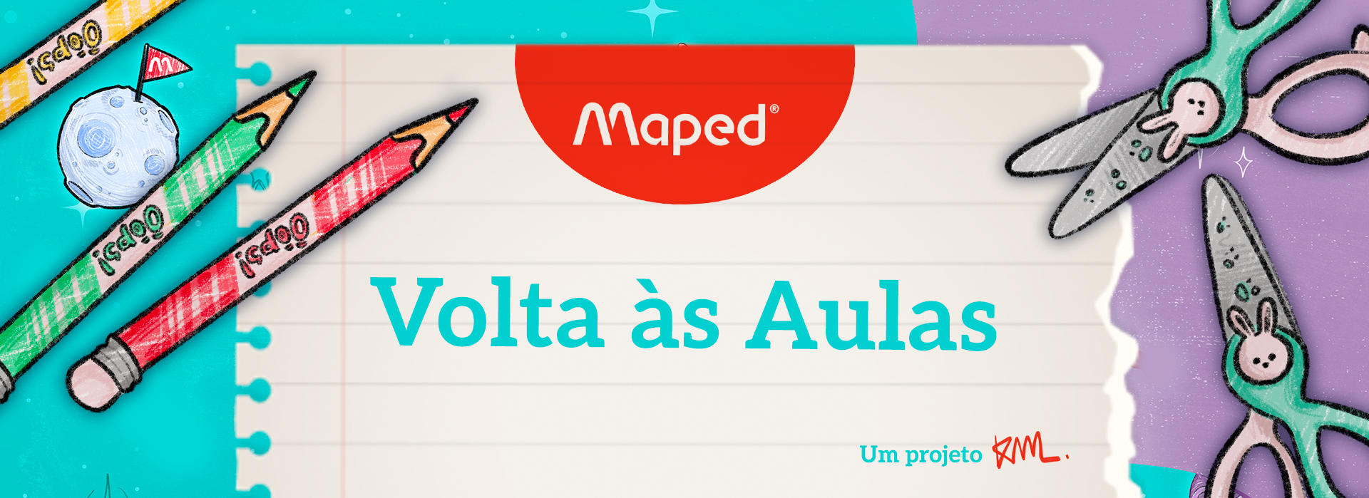 Design of the main concept piece for a Back to School ad campaign, redesign of the product icons and new illustrations for the international school supplies brand Maped.